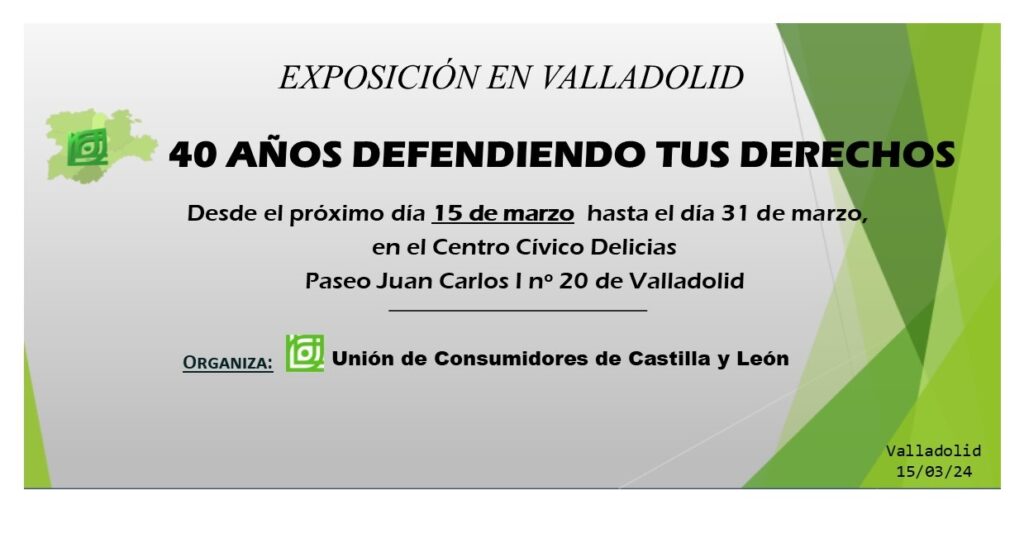 El día 15 de marzo, se inaguró la Exposición «40 Años Defendiendo tus Derechos>> que estará en Valladolid hasta el próximo día 31 de marzo en el Centro Cívico Delicias; situado en el Paseo Juan Carlos I nº 20 de Valladolid.