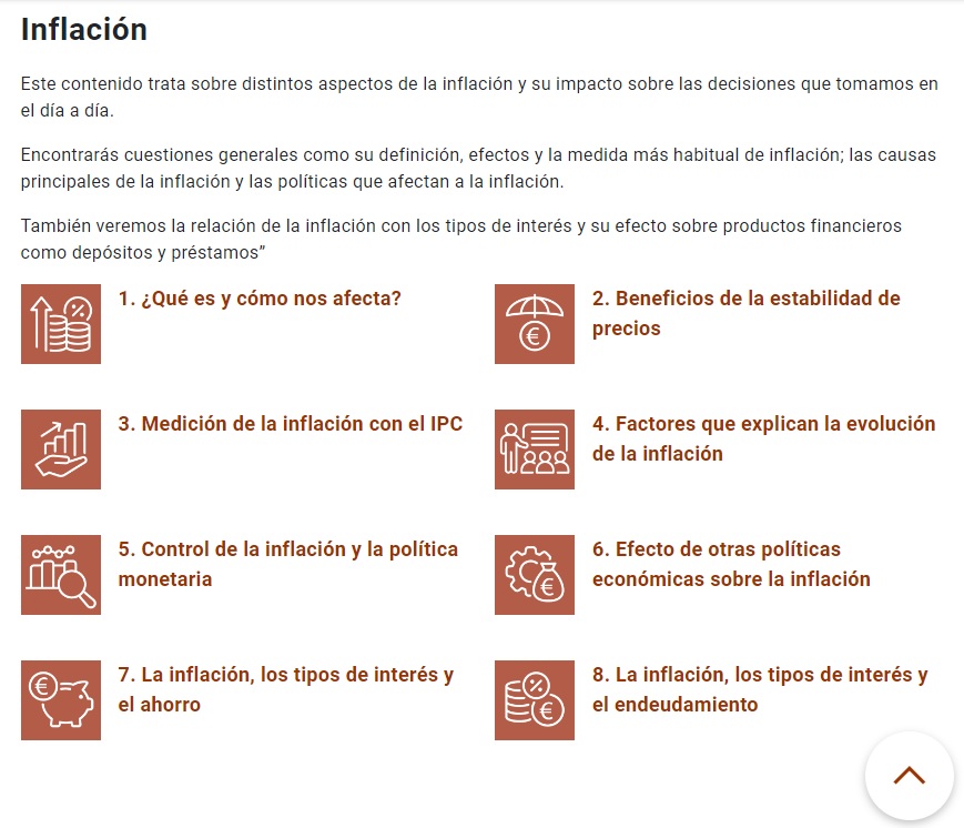El contenido del programa se centra en algunos de los factores económicos más relevantes para la toma de decisiones de las familias y su interrelación con el ámbito financiero y con las políticas económicas. La publicación comienza con un contenido sobre la inflación que abarca cuestiones como su definición, efectos, las causas principales de la inflación o las políticas más adecuadas para controlar los precios.