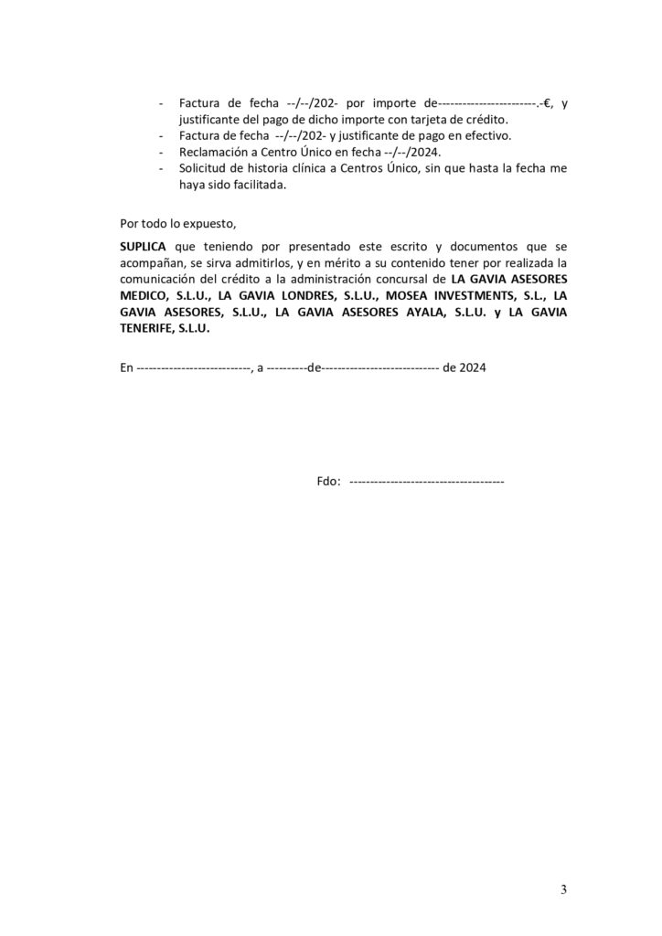 Desde la Unión de Consumidores de Castilla y León recomendamos a las personas afectadas que soliciten a CENTROS ÚNICO en el caso de no tenerlo, el contrato, pagos realizados, historia clínica, para poder acreditar la parte del tratamiento no realizada.