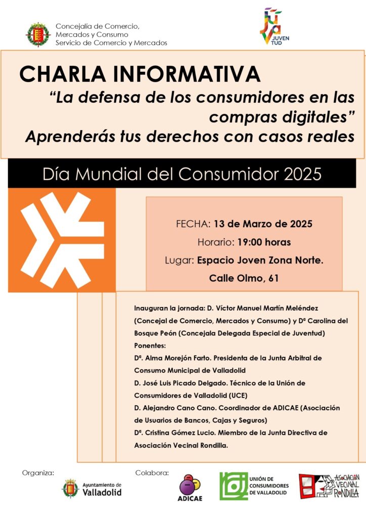 Debido a la celebración del Día Mundial de los Derechos del Día del Consumidor, vamos a colaborar en la Charla Informativa con el título “La defensa de los consumidores en las compras digitales” el próximo día 13 de marzo.